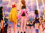 The Senshi stood in the remains of Nephrenia's palace, staring at the sky. Sailor Moon offered Jupiter her rose earring, and smiled.