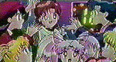 surprised. She then becomes very happy. Mako thinks about being in love, and Ami says that they were so busy preparing for high school exams that they didn't have time for meeting boys. Usagi goes, "Except for me! I've got Mamo-chan!"