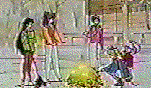 Each of the Senshi try out a punching game (except for Ami). Usagi gets a very low score, Minako tries hard and gets a fairly good score, Rei has a good score, and Makoto hits it without effort and gets 100, and all the Senshi turn up and congradulate her.