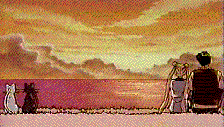 Ending Sequence As the credits went by, the two couples, Luna and Artemis and Usagi and Mamoru, stared at the sunset on a beach. As the sun set and the moon came out, they leaned into each other.