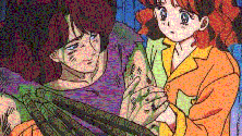 Serena wakes up screaming. She's late for school again. She grabs her lunch and runs out the door. Artemis says that Queen Beryl has been destroyed, but the girls all lost their memories. Luna thought it was sad that the girls had no memories of their friendships, but Artemis says they'll meet again. During this we see scenes of Serena running to school with Lita running past her, Amy getting a perfect score at school and causing a sweat drop on Serena, Raye sweeping out the steps to the temple, and Mina waiting for a bus and checking her watch. Luna wonders about Serena and Darien, then we see a scene of Serena at a hospital with Darien in a hospital bed. Serena says she hopes he feels better after the accident he was in, and Darien thanks her and mentions how weird her hair looks. � * Zoisite was actually a man in the original version, which would mean that Zoisite and Malachite... are gay lovers... ^ The NegaVerse in the dub was actually Queen Metallia in the original version, who gave Queen Beryl orders. For some reason the dub never gave this talking entity a name. ~ The dub never really explained why Queen Beryl was so angry. She got angry at Zoisite because she was in love with Prince Darien and therefore was jealous of Princess Serena. � Actually, Malachite sent them to a "random time," where he said they could end up in prehistoric earth with dinosaurs, or a war in Europe. So it was all a big coincidence that they ended up back in the Moon Kingdom, and not somewhere else. � In the original version, the Sailors sacrifice their lives to protect Sailor Moon and kill the "Doom and Gloom" girls. This was cut from the episode, but also made the ending much much more confusing. � In the original version, Sailor Moon gets really really hurt by Prince Darien, but the dub only kept the scene where he strikes her with his sword. In fact, she gets strangled and kicked by Prince Darien several times after that. � Another confusing part. In the original version, he protects Sailor Moon from the shards, and gets struck by one in the back. Then he says goodbye to her and dies. � Actually, the scene with the expanding pink bubble was much longer and showed the dead bodies of Sailor Moon, the other girls, and Prince Darien. Over that, Serena talks about all the little things in her life that make her happy (waking up late, failing another test, eating crepes with her friends, seeing a party dress in a store window), and that those are the thing she wants back. � This whole part did not make sense at all. The dub stole that hospital scene from when Sailor Moon turned Prince Darien good, when he thinks that he's alone and then Serena says, "You're not alone. I'm here." In the original version, they do an almost total replay of their first encounter, where she throws her test behind her and it hits him. But this time Molly is with her and says that he could be the guy of her dreams, and Serena says she has to be kidding. |